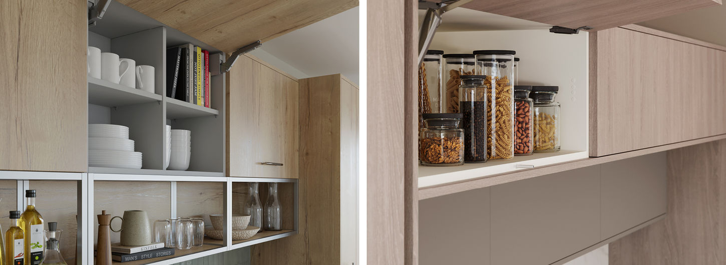 Textura, a beautiful collection of deep textured woodgrain and stone effect styles, perfectly paired together or with neutral shades. Aesthetically pleasing, the simple bar handle is the ideal choice for a contemporary style. A great space saver, a pull out larder solution offers the benefit of organised storage and a streamlined design.